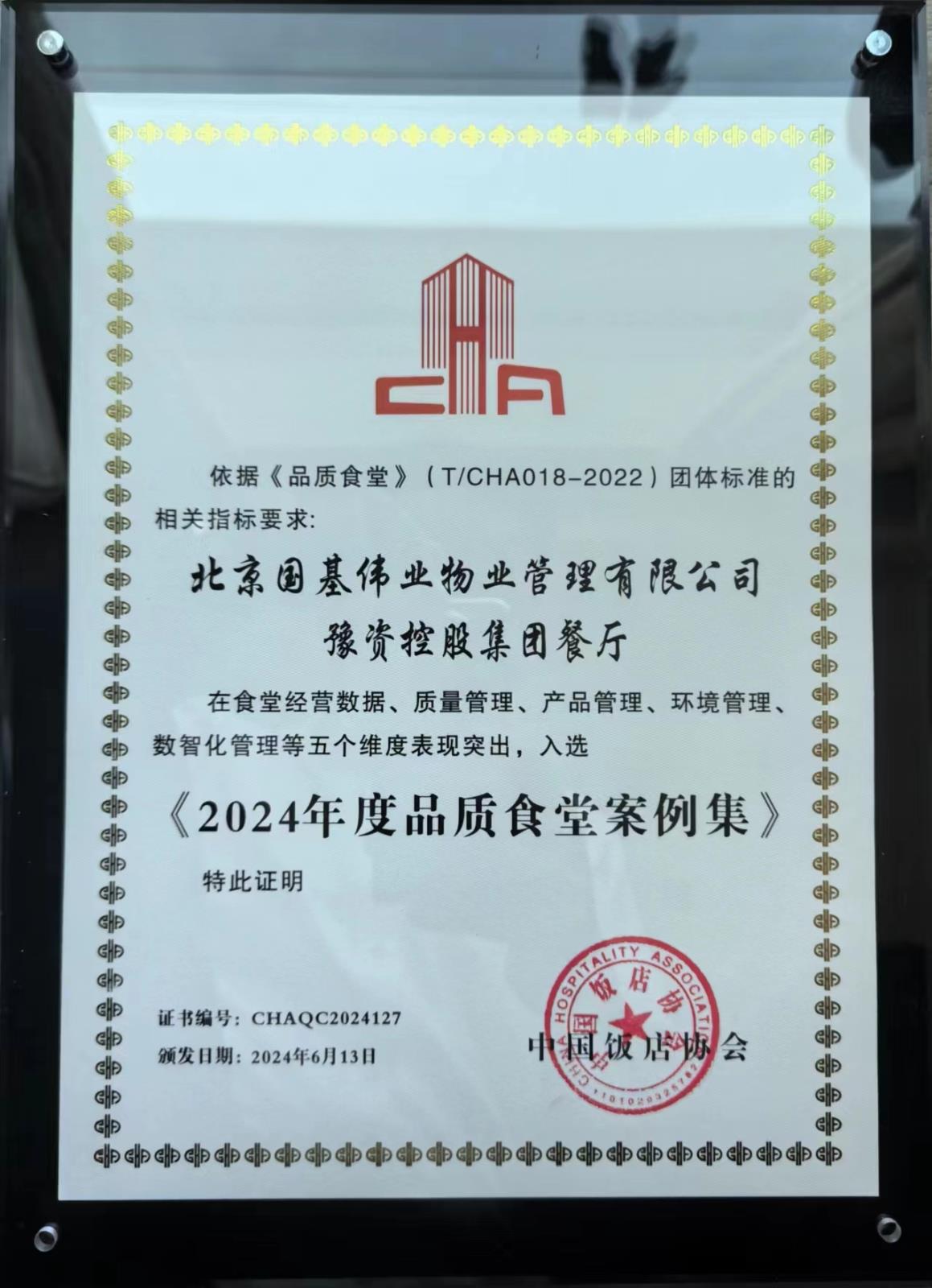 喜報!豫資控股餐廳成功入選中國飯店協會《2024年度品質食堂案例集》2024.06.14